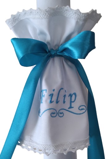 Вишита іменна прикраса для хрестильної чи причасної свічки.