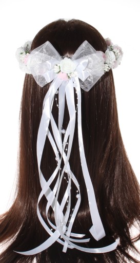 - Знімний бантик з намистинами та стрічками, вінок можна носити з ним і без (без бантика вінок найменший за розміром)
