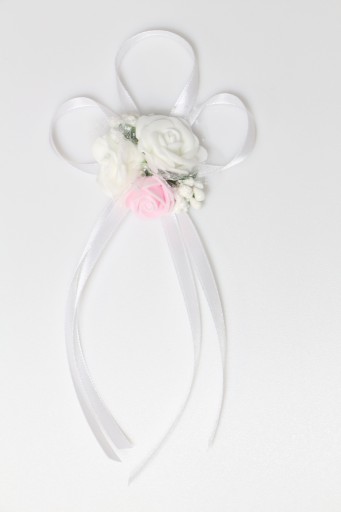 - WORLD DECORATION, розмір деталі, прикрашеної квітами, приблизно 5х5 см, виконана на білій декоративній гумці,