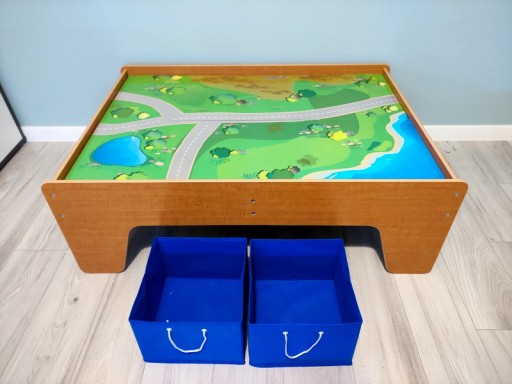 Ігровий стіл для хлопчиків і дівчаток На стільниці є сценарій з дорогами, полями та озерами, в якому можна грати з транспортними засобами, тваринами, пластиковими та дерев'яними конструкціями.