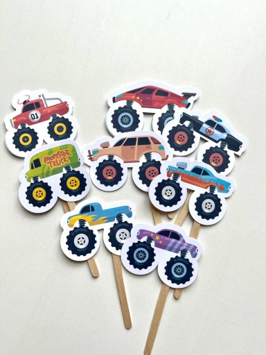 Пікери з вантажівками-монстрами. У набір входить 8 деталей, кожна з машинкою різного кольору.