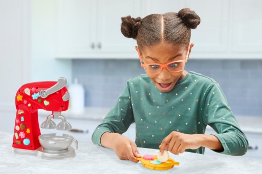 Готуйте чудові глиняні тістечка, кекси та печиво за допомогою ігрового набору Play-Doh Magic Mixer! Кандидати у випічку можуть удавати, що створюють величезні партії випічки, помістивши 1 із 2 деків форм для ласощів Play-Doh у знімну чашу, наповнивши кожну форму Play-Doh і просто нарізавши ґнец для важеля, щоб вирізати божевільне печиво та торти шалених форм! Додайте імітацію фігурної глазурі за допомогою вичавки або лопатки, сформуйте штучні гранули за допомогою отворів у ручці лопатки та створіть ще більше глиняних цукерок, начинок і прикрас за допомогою форм на боці іграшкового міксера. Цей ігровий набір Play-Doh містить 283 г нетоксичного ігрового тіста в різних кольорах, забезпечує чудову творчу розвагу та стане чудовим подарунком для дітей віком від 3 років, які люблять кухонні іграшки та кулінарні ігри.
