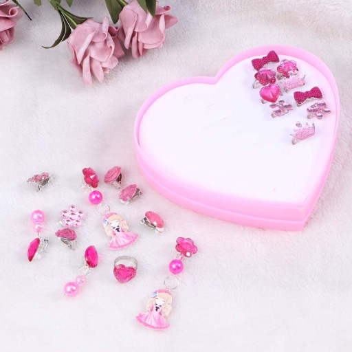Це набір скриньок для дівчаток. Цей набір прикрас розроблений спеціально для дівчат. Дітям дуже сподобається. Він упакований в подарункову коробку у формі серця, це хороший подарунок для вашої принцеси. Вся продукція перевірена і безпечна для дітей.