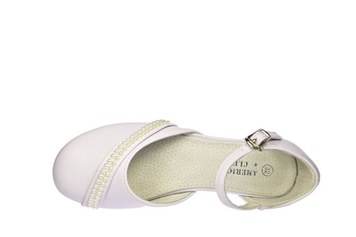 Туфлі для причастя для дівчаток, білі балерини на високих підборах, застібаються ремінцем American Club