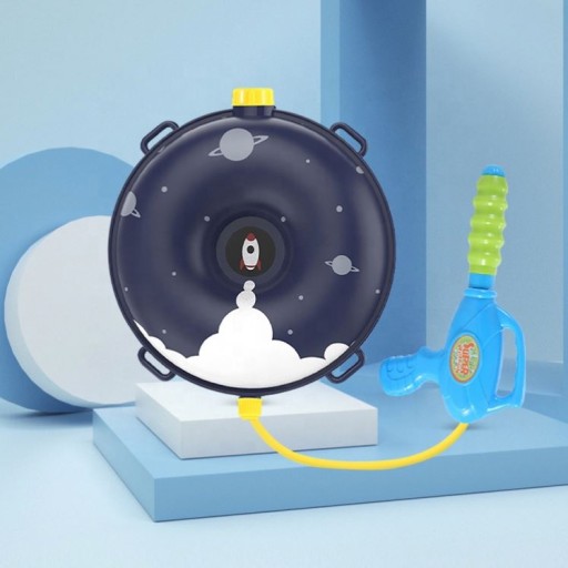 Рушниця з рюкзаком у формі блакитного пончика на ракетно-космічну тематику дуже проста у використанні. Відкрутіть ємність для води (рюкзак) і наповніть її, щоб вода вийшла з пістолета, рухайте насос вперед і назад. Вода буде виходити з пістолета під тиском. Ви здивуєтеся, яка дальність дії води.