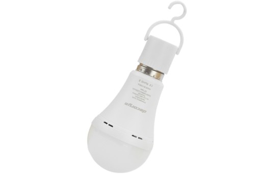 Лампочка має вбудований акумулятор, який заряджається, коли її вкручують у патрон. При повній зарядці він світиться до двох годин! Його можна прикрутити до лампи на стелі, настільної лампи, повісити куди завгодно за допомогою вбудованого гачка або просто тримати в руці і висвітлювати тільки те, що вам потрібно в даний момент.