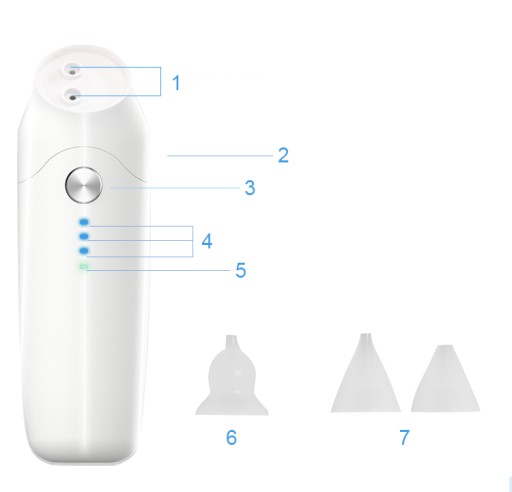 Це електричний аспіраторефективний пристрій для очищення носової порожнини і пазухивід слизу і нежиті. Пристрій забезпечує дуже сильне всмоктування, щоніжно очищає нісі забезпечує комфортне дихання під час сну і вдень. Змінні силіконові накладки гарантують безпеку навіть найменших носоупорів!