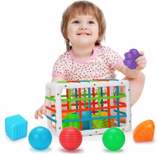 Це стимулюватиме розвиток вашої дитини! Гра дитини полягає в тому, щоб вставляти та витягувати елементи з навчального кубика. Під час гри дитина розвиває органи чуття та вдосконалює ручні навички. Кожна з 4 цеглинок має щось особливе, що викликає бажання вийняти їх і покласти назад у сортувальник. Блоки можна кидати, вони мають однакові форми та текстури, щоб розвивати сенсорні навички, розум і насолоду дитини, заохочуючи її до експериментів. Блоки також можна використовувати для навчання форм і кольорів. Кубик-сортер має гнучкі різнокольорові гумки, які приємні дитині.Незамінна іграшка для дитини на ранньому етапі життя!