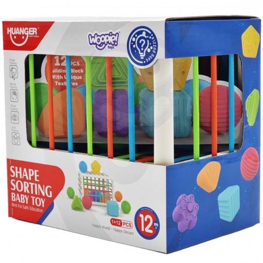 - в набір входить: кубик-сортер + 12 блоків (6 м'яких блоків і 6 жорстких сенсорних блоків)