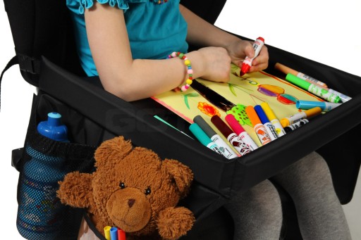Велика поверхня стільниці дозволяє дитині комфортно грати, а також можливість спокійно їсти і пити. Спеціально розроблені високі краї столика запобігають падінню іграшок під сидіння. Завдяки бічним кишеням дитина в дорозі матиме під рукою улюблену іграшку, гру, книгу, кольорові олівці, а також напій, перекус або, наприклад, серветки.