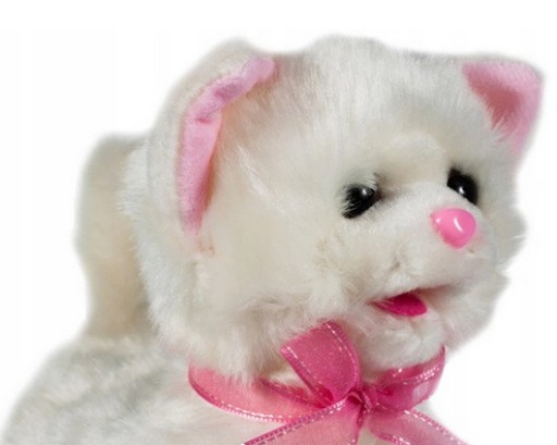 Він має численне біле хутро, яке приємне на дотик і любить, коли його гладять. Виводьте його на прогулянку і доглядайте за твариною. Кошеня працює на батарейках, що робить його зручним у використанні. Батарейки заховані за кришкою, яка додатково закривається гвинтом, що ускладнює самостійний доступ і тим самим забезпечує безпеку малюка.