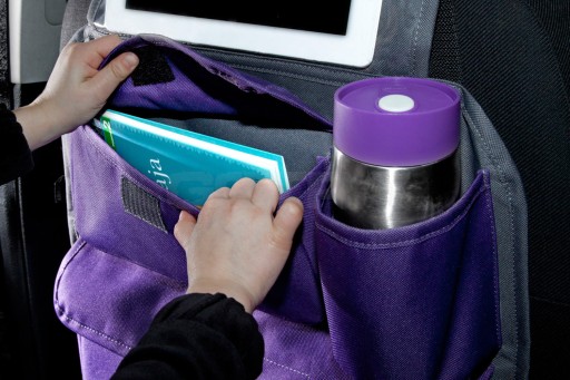 Органайзер має спеціальну кишеню з віконцем для планшета, виготовлену з фольги, що дозволяє вільно управляти пристроєм. Зверху віконце застібається на липучку, тому немає страху, що пристрій вислизне.Розміщення планшета на підголівнику гарантує, що діти зможуть безпечно та комфортно дивитися мультфільми та фільми під час подорожі (таке положення знижує ризик заколисування ), а сама подорож проходить набагато швидше і веселіше!