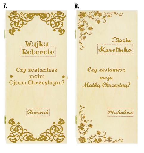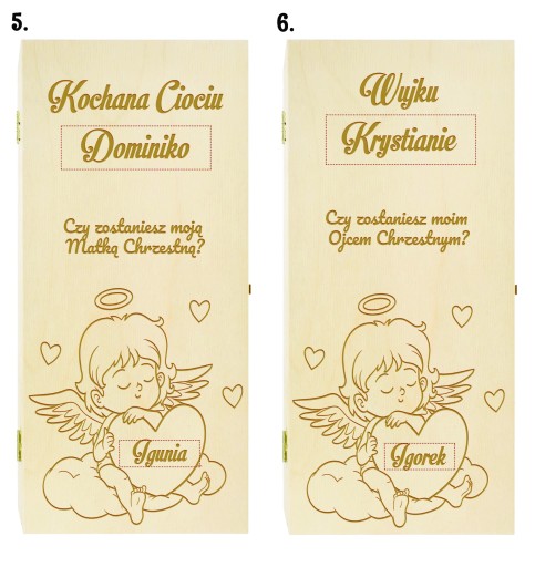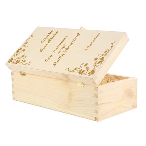 Скринька для вина - незвичайна ідея, коли ми хочемо поставити дуже важливе питання. Гравірування на коробці - не звичайний запит. Такий подарунок підкреслює ранг події і ту роль, яку будуть грати хрещені батьки для нашої дитини.