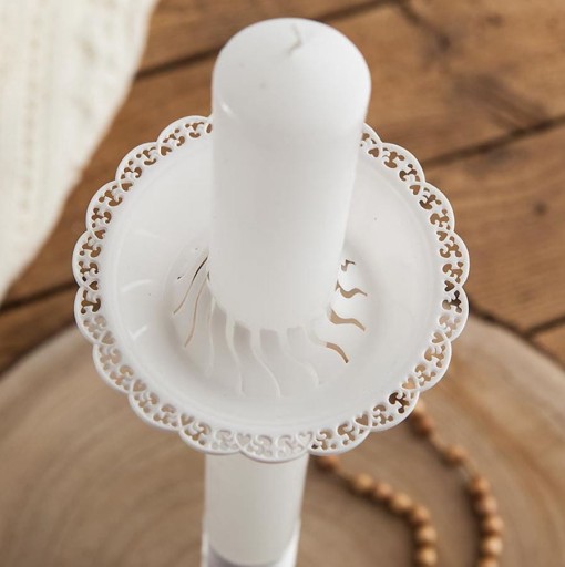 Крапельниця білого відтінку є незамінним доповненням до свічки для причастя або свічки для хрещення - гарні свічки, декоровані вручну, ви можете знайти на іншому нашому аукціоні.