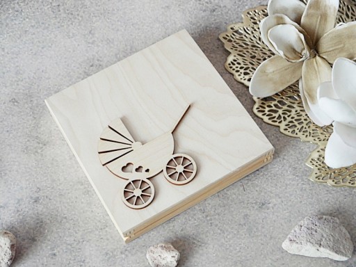 - Ящик з натурального дерева:14,5 см/14,5 см, посередині зліва фотографія розміром бл.