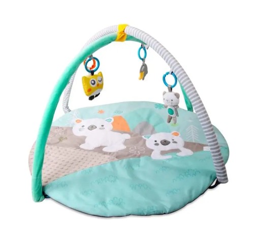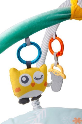 Основа навчального килимка м'яка, її можна класти на підлогу. Підвішені іграшки спонукають дитину хапати, а дзеркало стимулює зір. Дитячий килимок підходить з перших тижнів життя.