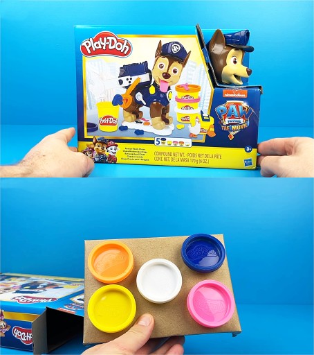 У набір Play-Doh Paw Patrol входить велика фігурка Чейза з такими цікавими функціями, як видавлювання язичка з тіста, а також багато форм для створення кісток, значків тощо!
