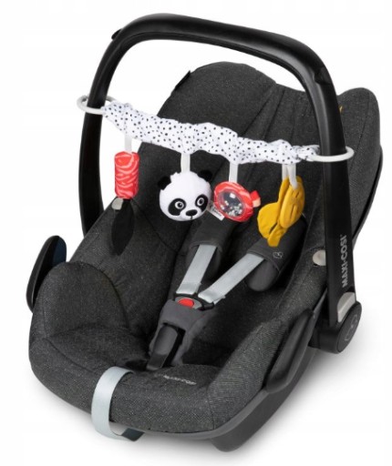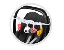 Сенсорна підвіска для коляски - ідеальна ідея для першої іграшки для малюка, яка зробить кожну прогулянку та подорож приємнішою. Ідеально підходить для коляски та автокрісла, підвіска кріпиться за допомогою безпечних і зручних пластикових кілець, розташованих на обох кінцях. Іграшки, що додаються до підвіски, сприяють розвитку моторики (хапання, тягання, струшування), активізації слуху (шурхітки, брязкальця), зору (контрастні кольори, дзеркало) і дотику (різні текстури).