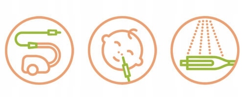 Правильний процес аспірації описано в 3-етапному методі. Спочатку розрідіть нежить, капнувши в ніс дитини кілька крапель фізіологічного розчину. Потім зніміть нежить за допомогою аспіратора Katarek Simple і остаточно зволожите слизову оболонку носа сіллю, що залишилася в ампулі.
