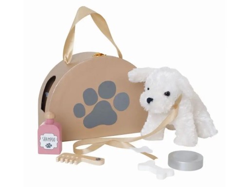Миле цуценя в сумці для перенесення пропонує багато можливостей для фантастичних розваг як для дівчат, так і для хлопчиків. У набір входить собачка, спальник, миска, ковдра, гребінець і флакон шампуню.