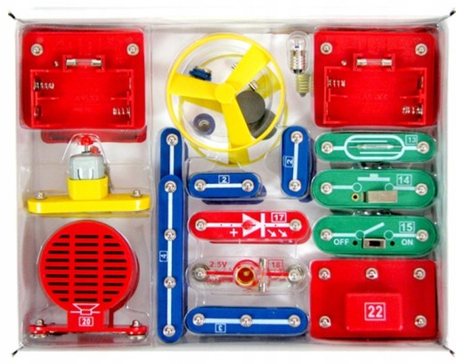 Усі елементи, що входять до комплекту, сконструйовані таким чином, щоб їх можна було легко з’єднати за допомогою гофрованих конекторів. На основі детальних інструкцій польською мовою дитина будує електронні набори простим способом, як збирання кубиків: наприклад, пристрій, який вмикає світло після настання темряви.