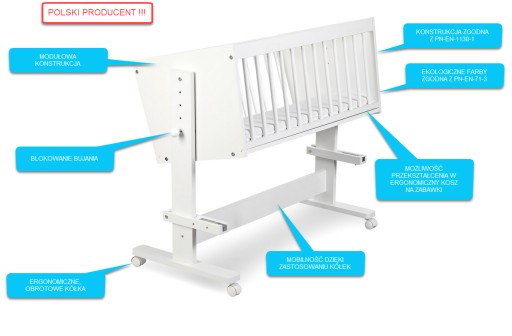 Традиційна колиска Klupś 102 x 102 см біла