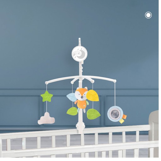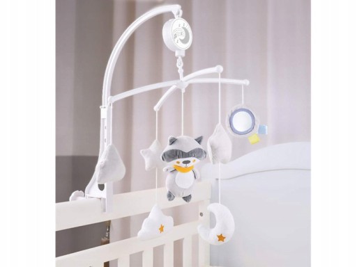 Карусель містить музичну шкатулку з приємною, спокійною мелодією та плюшеві підвіски різної форми та ніжних, приглушених кольорів. Конструкція каруселі пластикова.