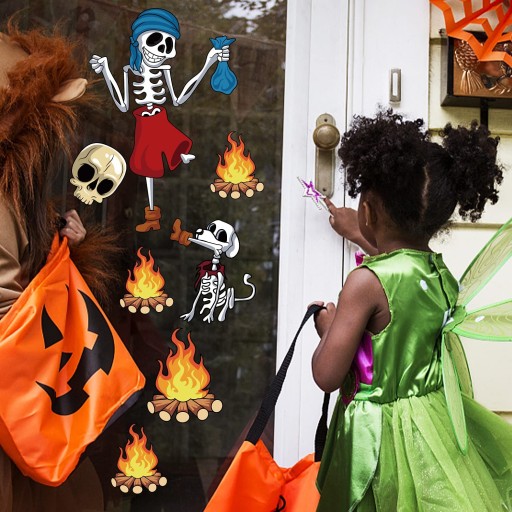 Пакет включено: ви отримаєте 8 аркушів хеллоуїнських наклейок на вікна з 57 елементами різноманітних хелловінських піратських скелетів. Задовольніть свої потреби в оформленні дому на Хелловін і додайте характерний стиль декору.