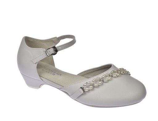 Туфлі для причастя для дівчаток білі балетки на підборах, що застібаються на ремінець American Club