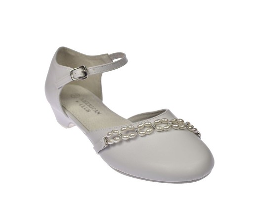 Білі балетки для дівчинки на високих підборах, що застібаються на пояс, марки American Club