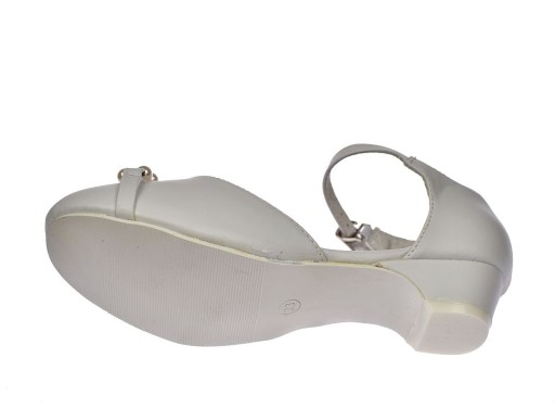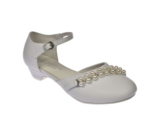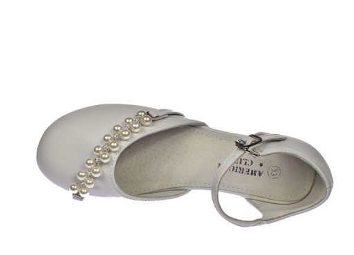 Туфлі для причастя для дівчаток білі балетки на підборах, що застібаються на ремінець American Club