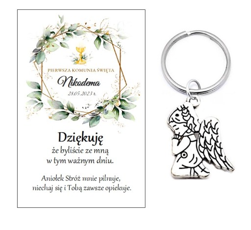 ПОДАРУНОК СУВЕНІР ПОДАРУНОК НА СВЯТЕ ПРИЧАСТЯ ГОСТЯМ - ЛИСТІВКА ПОДЯКИ ТА БРЕЛЮК З АНГЕЛОМ.