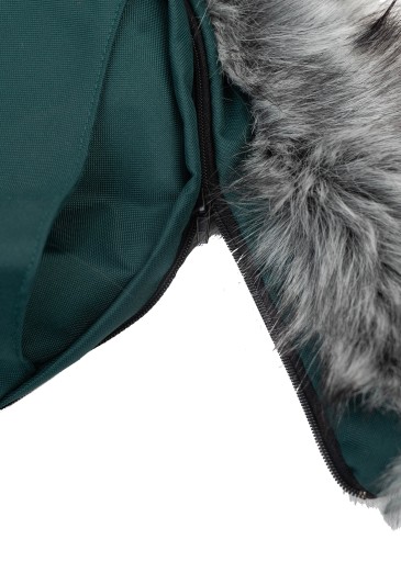 Форма пивного капюшона була розроблена так, щоб підходити до більшості дитячих колясок і гарантувала свободу рухів.Великий капюшон оздоблений красивим штучним хутром, що виглядає як натуральний песець. Це покращує тепловий комфорт і робить пивну ще затишнішою. При необхідності хутро можна повністю зняти.