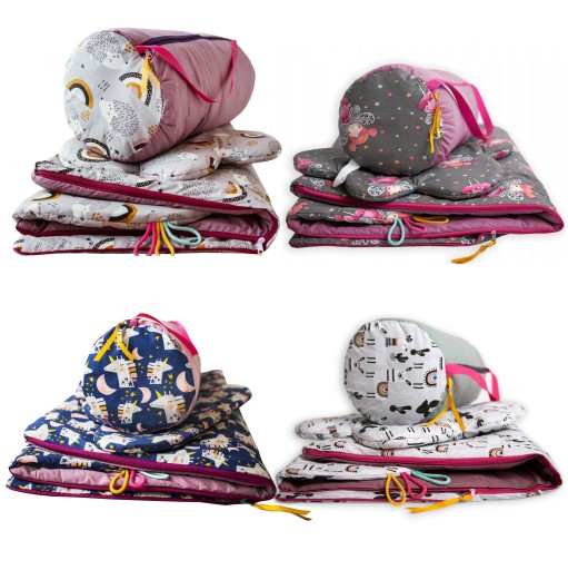 В спальний мішок і чохол вшиті бавовняні стрічки, на які можна вписати дані дитини. Зручний і практичний дитячий набір, який полегшить адаптацію дитини до дитячого садка.