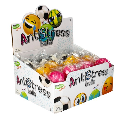 Штамп антистрес із тваринами з бука. На поверхні має тиснення, що імітують характерні шестикутні клапті, з яких зшитий м'яч. Використання спіненого матеріалу дозволяє м'яти і пресувати іграшку. Кольори відносяться до тварини, зображеної на марці.