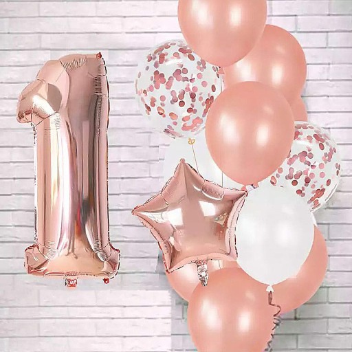 ПОВІТРЯНІ КУЛІ НА 1 ДЕНЬ НАРОДЖЕННЯ ДІВЧИНКИ ROSE GOLD