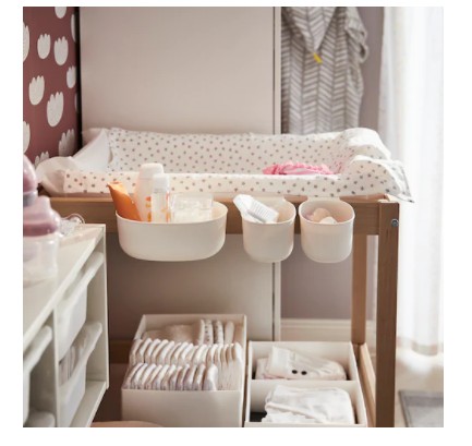 Кошики економлять місце, вішаючи їх на край пеленального столика.