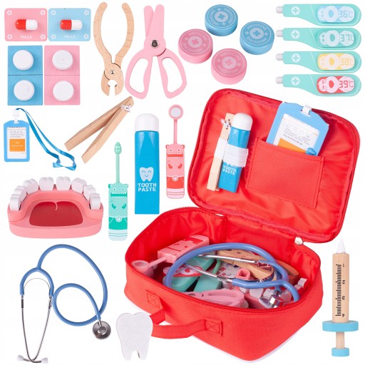 Наш набір доктора ідеально підходить для гри в лікаря. Все упаковано в естетичну червону валізу з ручкою. Всі аксесуари завжди будуть під рукою у маленького лікаря, і все буде легко носити!
