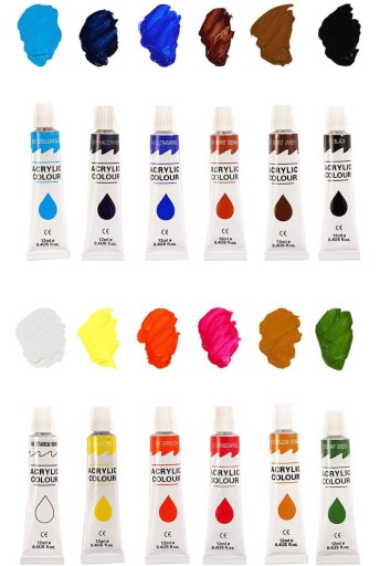 - 12 тюбиків з фарбою по 12 мл кожен.