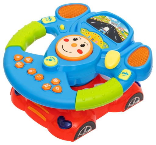 Інтерактивне кермо має вбудований проектор. Іграшка підсвічується при натисканні будь-якої кнопки і грає веселі мелодії. Має світлодіодні фари, як у справжнього автомобіля, і покажчики повороту. У самій верхній частині керма розташований проектор, який відображає на стіні автомобіль, що рухається.