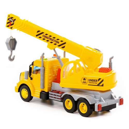 Машина-кран на основі реальних дорожніх транспортних засобів. Автомобіль створює реалістичні звукові ефекти (початок автомобіля, хід заднім ходом, гудок, звук працюючого двигуна) і світлові ефекти - миготливі ліхтарі на даху автомобіля.
