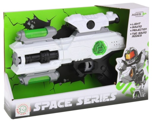 Унікальна зброя, завдяки якій ваша дитина відчує себе справжнім зоряним воїном. Відчуйте дію, коли натискаєте на курок зіркової зброї! Ви почуєте звуки космічного бою, а ваша футуристична зброя засвітиться безліччю різнокольорових вогнів. У бочці є проектор, який покаже вам зображення космічного воїна. Пістолет має приціл, встановлений зверху, який можна переміщати вперед і назад. Крім того, ви можете змінити зовнішній вигляд зброї, повернувши першу частину зброї вправо. Іграшка чудово працюватиме в темній кімнаті, підкреслюючи різнокольорове освітлення та проектор.