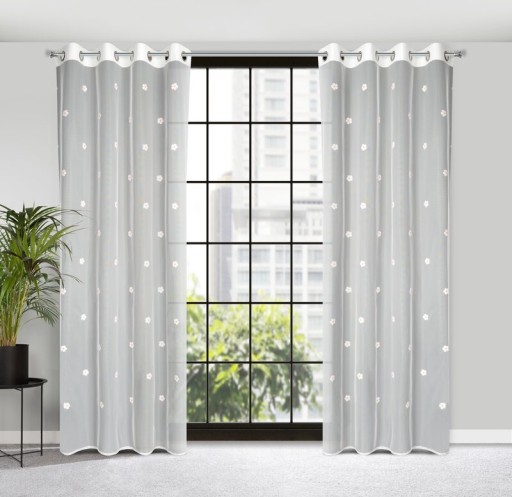 Готова штора оздоблена дитячою вишивкою, розмір: ширина: 140 см, довжина: 250 см, колір: білий, склад: 100% поліестер.