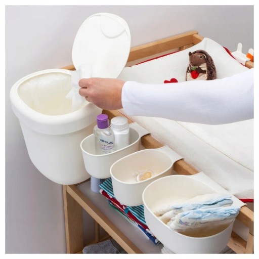 У цих кошиках на пеленальному столику все під рукою - від пелюшок і мочалок до засобів по догляду за шкірою та рушників. Ідеально підходить, якщо у вас жвава дитина, яка потребує постійної уваги. Кошики економлять місце, вішаючи їх на край пеленального столика.