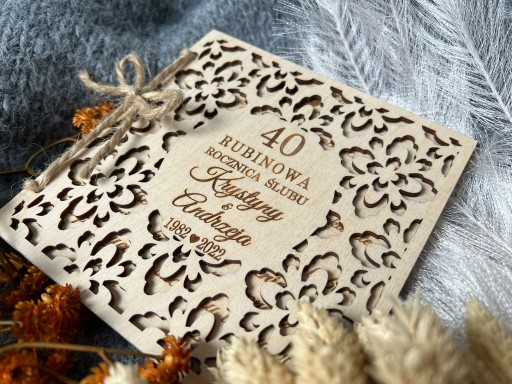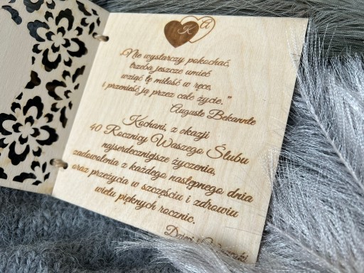 Листівка прикрашена глибоким лазерним гравіюванням у вигляді СЕРЦЯ з ініціалом і підписом «(ювілей + імена пари + дата)» (ШАБЛОН ВИРІШЕНИЙ згідно фото зліва).