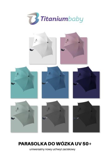 Парасолька для коляски голландського бренду TITANIUM BABY було розроблено, щоб полегшити це як прикріпити його до кожної коляски. Парасолька регулюється кут нахилу в трьох місцях і забезпечує дуже високий захист UV50+ для оптимального захисту дитини від сонця - австралійський стандарт! Парасолька має універсальний кріпильний кронштейн/хомут з нержавіючої сталі спеціальна адаптація до кожного діаметра та форми труби візка. Використовуйте важіль і трохи більше сили під час збирання, пряжка є дуже надійно виготовлений і гарантує стабільне та міцне кріплення. Парасолька має унікальні дроти у верхній частині капелюшки, виготовлені з волокна скло, яке характеризується високою міцністю, еластичністю і стійкістю до корозія!