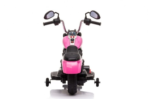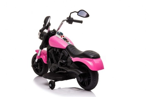 Пропонований нами мотор чоппера виготовлений із міцного кольорового пластику. Він має гудок і мелодії, які розміщені на кермі. Двигун живиться від акумулятора 6 В/4,5 Ач. Оснащений двигуном потужністю 25 Вт. Максимальне навантаження не повинно перевищувати 20 кг.