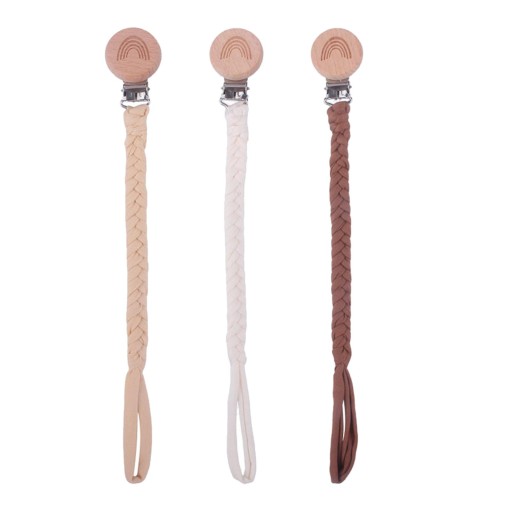 Ланцюжок для пустушки з 3 предметів. Практичний ручний вузол для дитячого садка. Унісекс / кава / шкіра