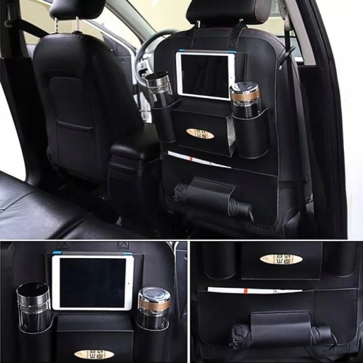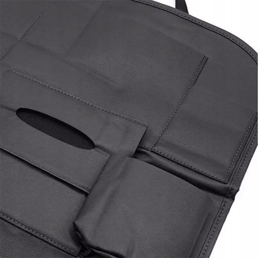 Органайзер виготовлений з високоякісної ЕКОЛОГІЧНОЇ ШКІРИ, водонепроникної, приємної на дотик, брудонепроникної, легко стирається, має ряд кишень і відділень, серед яких: для напоїв, серветок, телефону, планшета, книги, іграшок та інших речей, які зроблять подорож кожного пасажира, особливо найменшого, приємнішою. Органайзер також захистить ваше крісло від бруду.