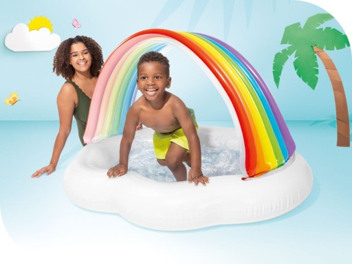Дитячий басейн Rainbow CloudBrandsIntexto — це чудовий спосіб втекти від літньої спеки разом із малюком. Він має веселий захист від сонця веселкового кольору - козирок запобігає сонячним опікам під час довгих літніх розваг. Душовий піддон у формі хмари вразить навіть найвимогливіших юних клієнтів.